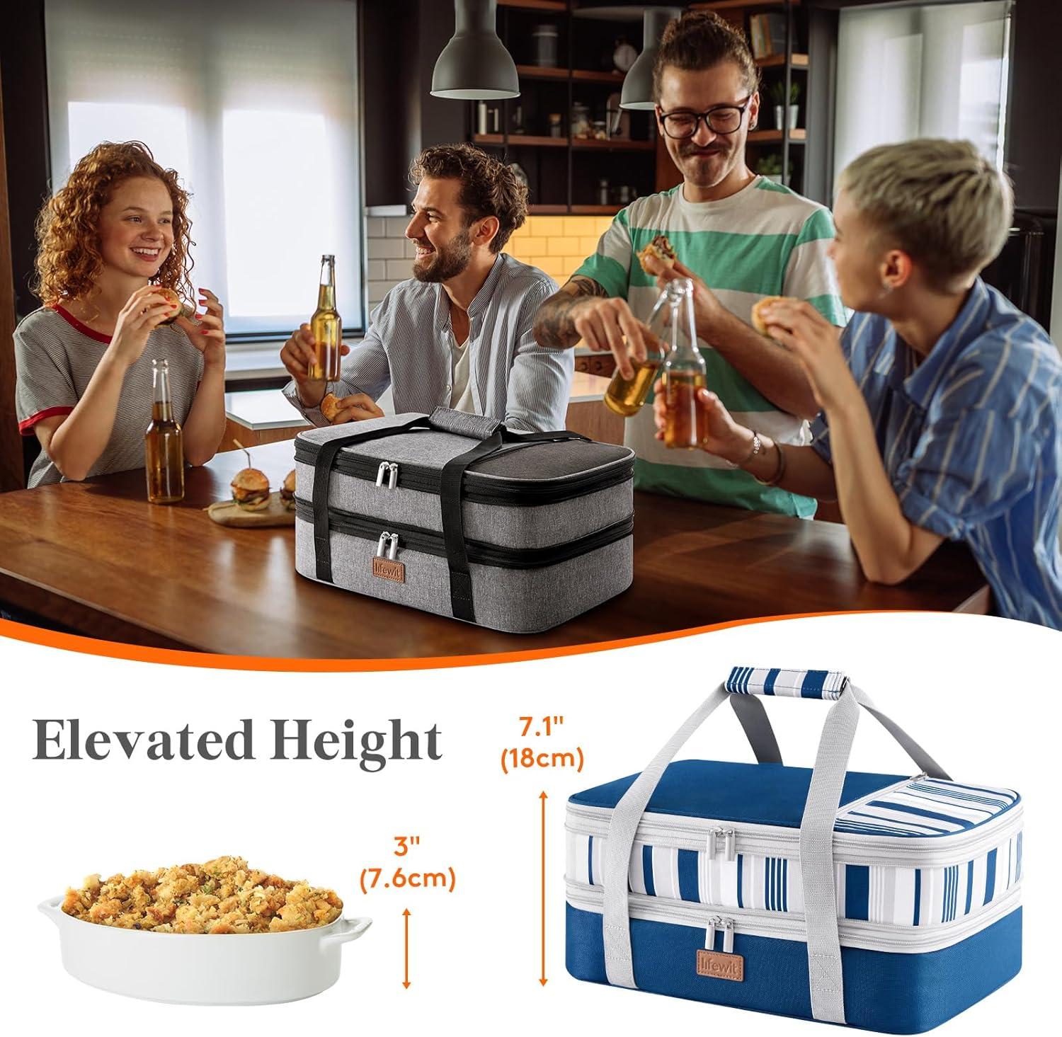 imageLifewit Insulated Double Casserole Carrier Thermal Lunch Tote for Potluck Parties Picnic Beach Fits 9 x 13 Inches Casserole Dish Expandable by Mid Zipper GreyBlue