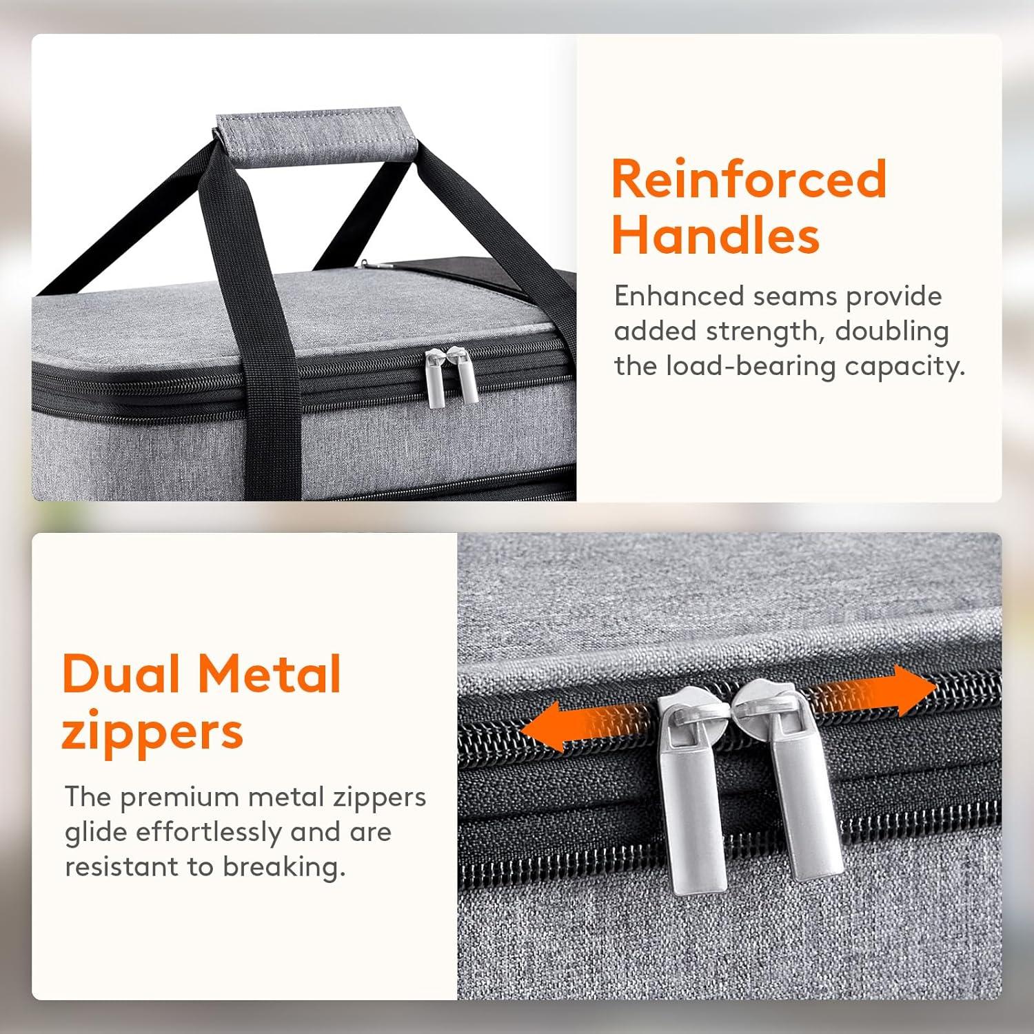 Convenient & Portable: The portable food carrier features wide openings and zipper closures, making packing effortless. It comes with two carry handles for convenient transport. Additionally, it includes a spacious top zipper pocket for storing utensils, allowing for easy accessibility