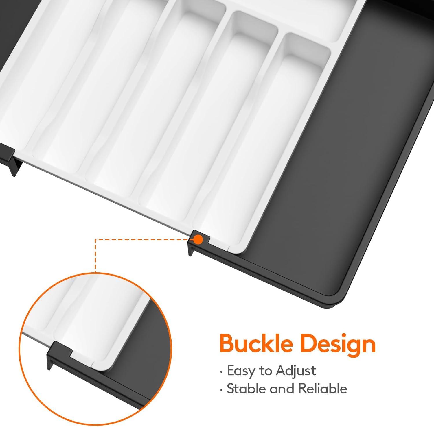 Thoughtful Design: Unique groove design for easy access to cutlery; The buckle design ensures smooth sliding and effortless adjustment, preventing partition displacement. Lifewit utensil holders bring seamless order to your kitchen!
