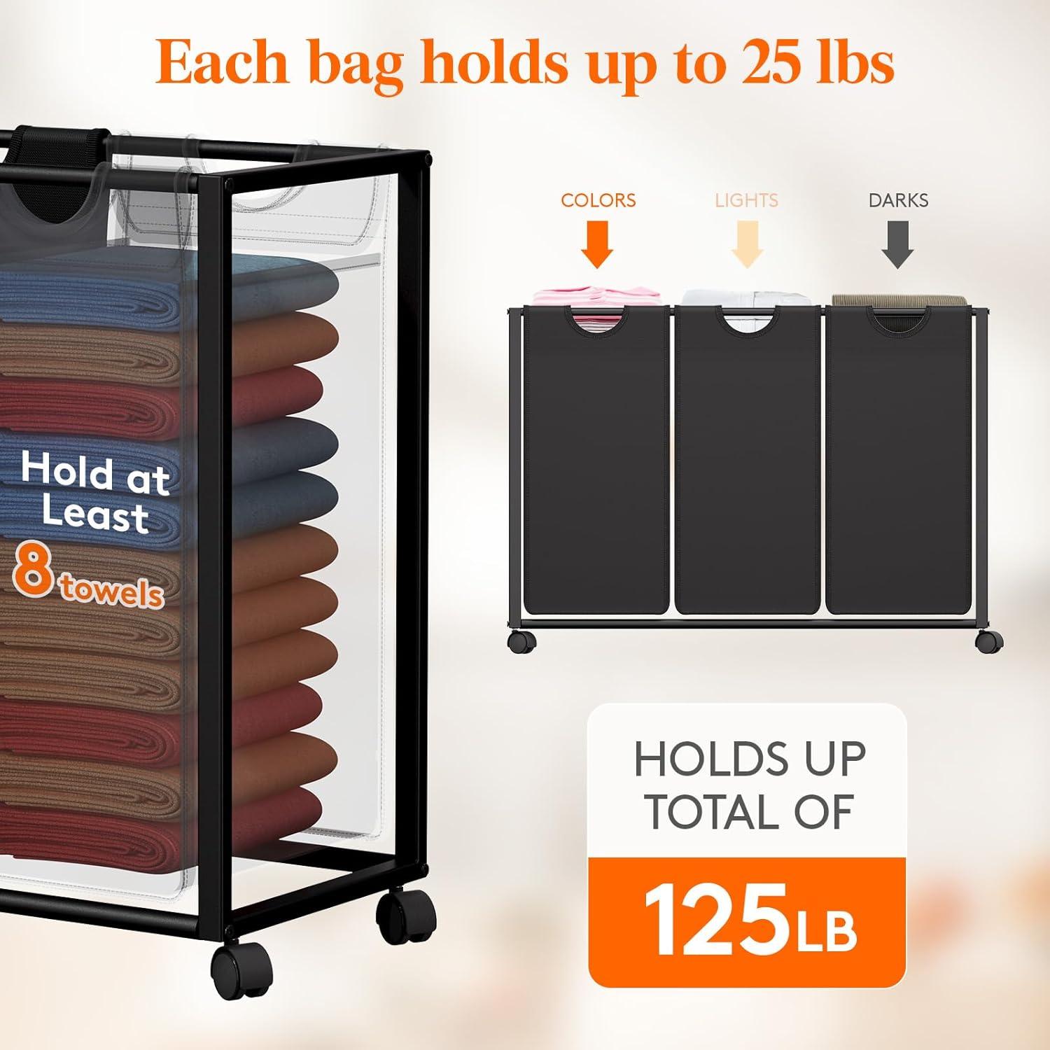 3 Compartments Large Capacity: The laundry basket 3 section with a total capacity of 135 liters / 36 gallons allows you to sort laundry by type and separate light and dark colors for efficient washing