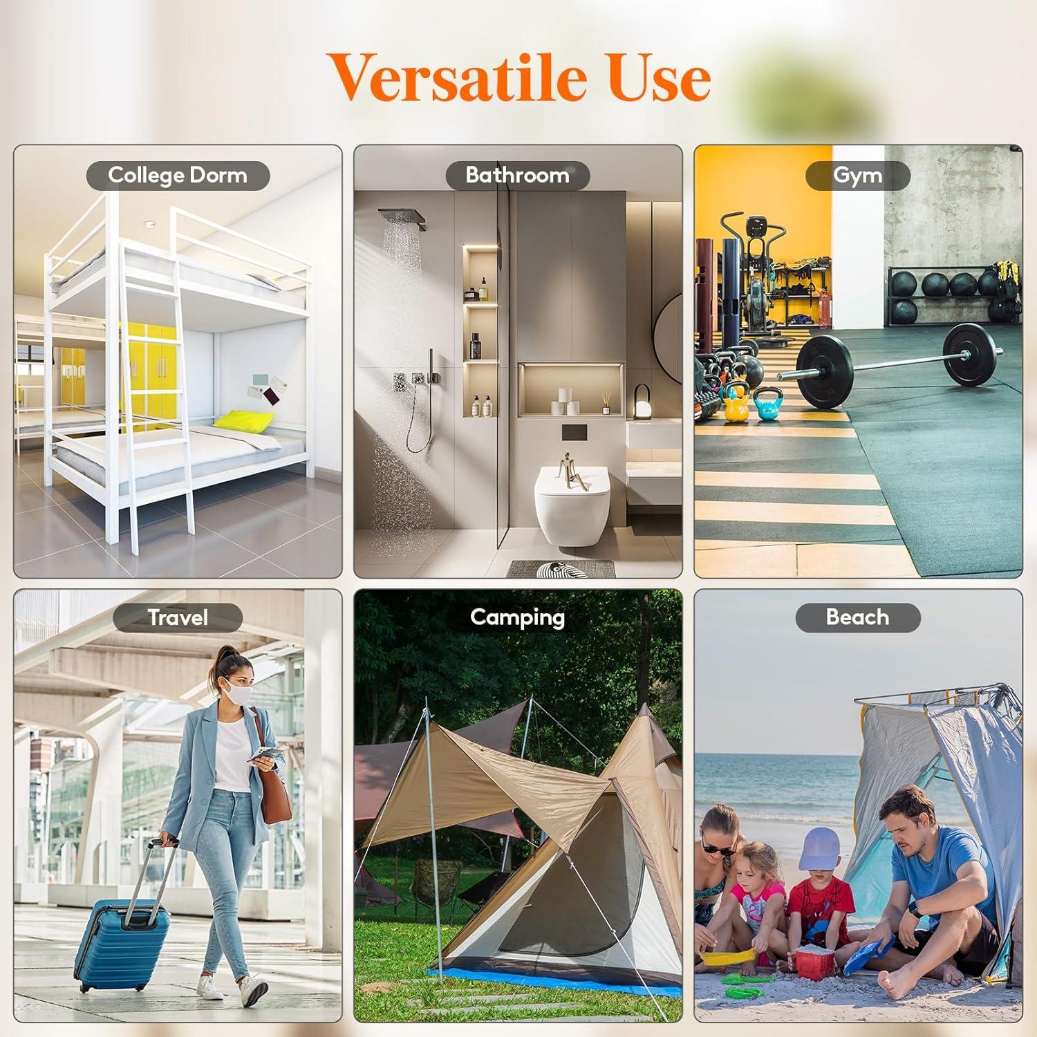 Superb Quality: The shower bag is breathable and lightweight. The wide reinforced handles are strong, durty and won't pinch your hands. This travel shower caddy can be hung from doors, shower heads and hooks of all kinds with ease.