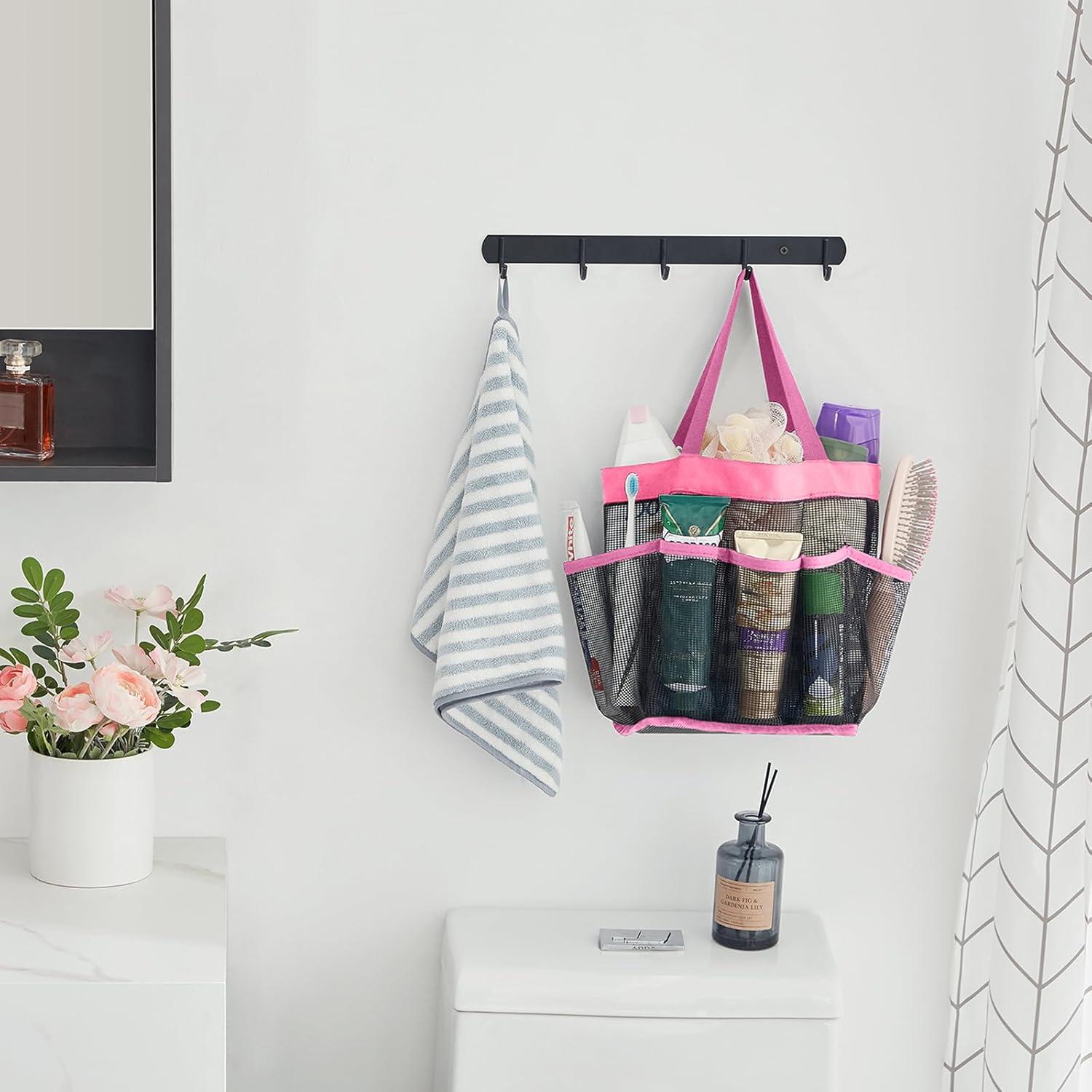Lifewit Mesh Shower Caddy Freestanding Portable Shower Tote Bag for College Dorm, Bathroom, Gym, Travel, Quick Dry Hanging Organizer with 7 Storage Pockets for Toiletry Essentials, Medium,Black(Pink)