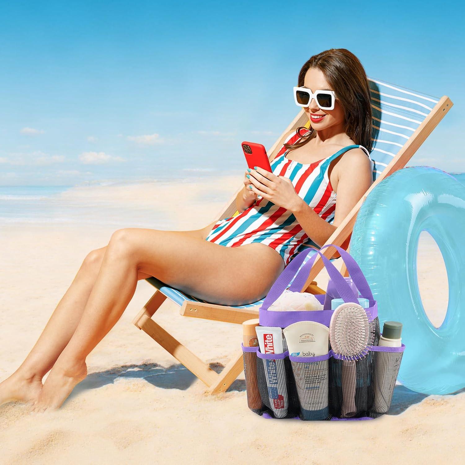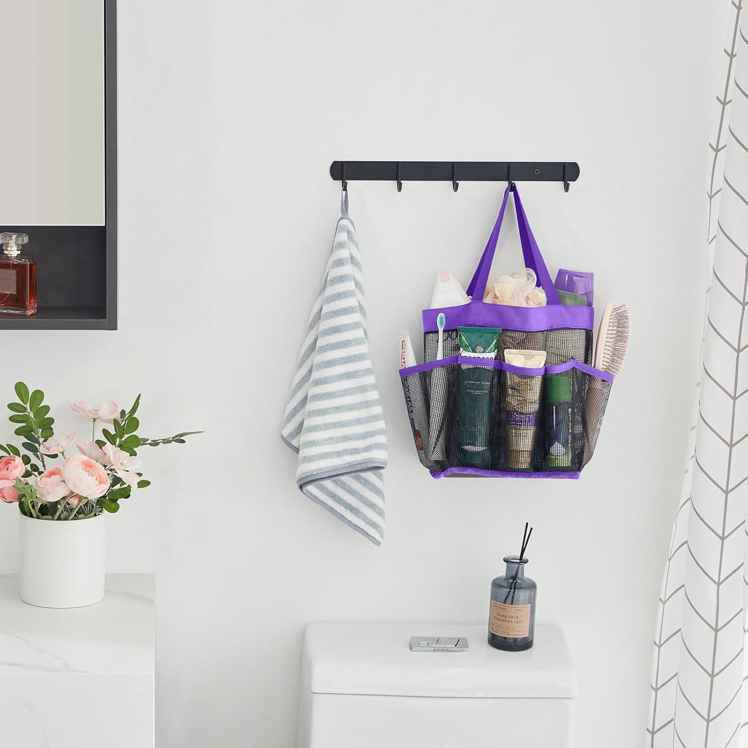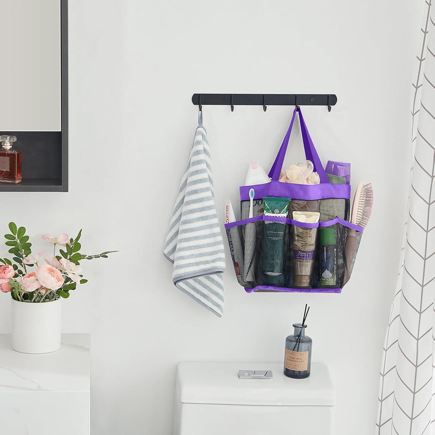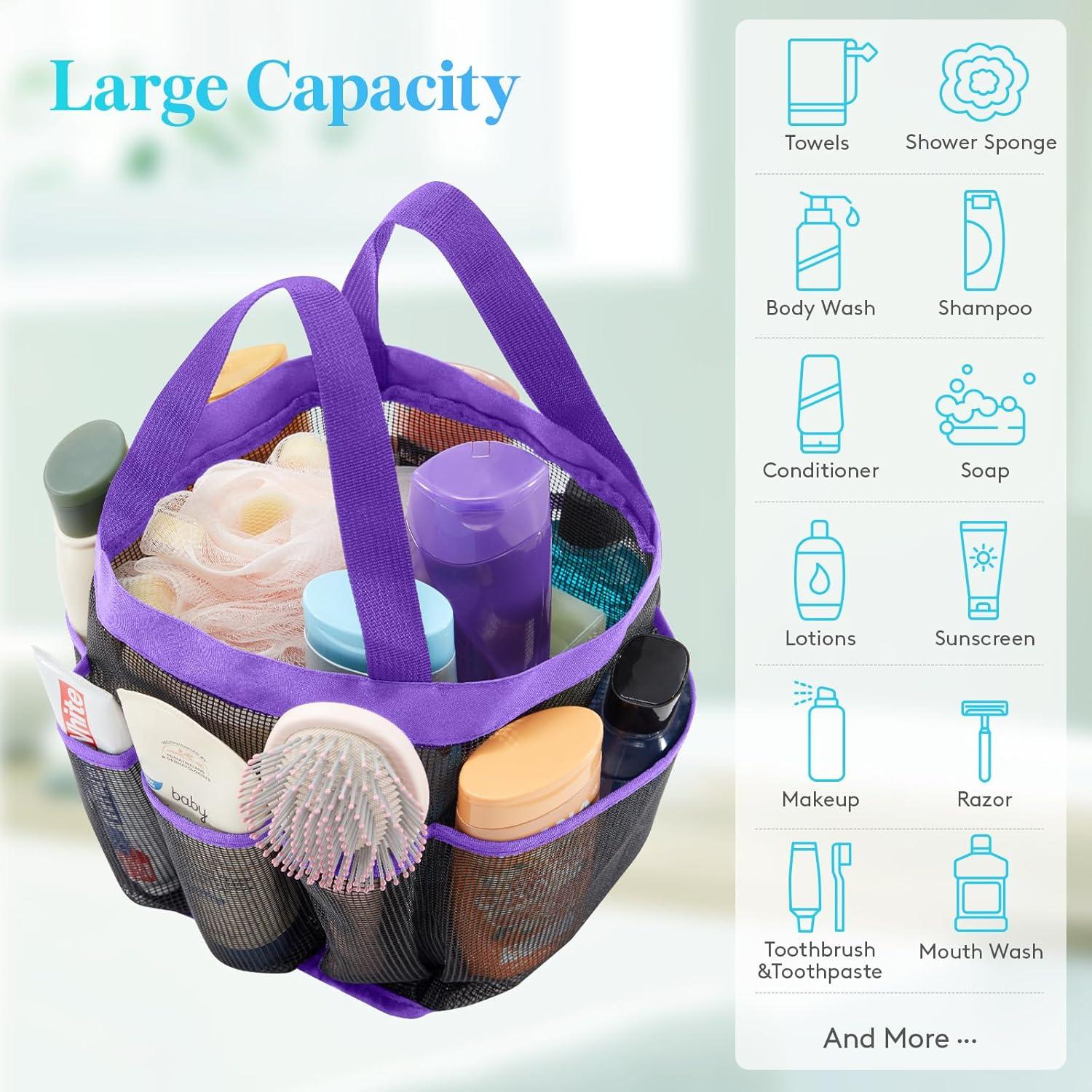 Lifewit Mesh Shower Caddy Freestanding Portable Shower Tote Bag for College Dorm, Bathroom, Gym, Travel, Quick Dry Hanging Organizer with 7 Storage Pockets for Toiletry Essentials, Medium,Black(Purple)