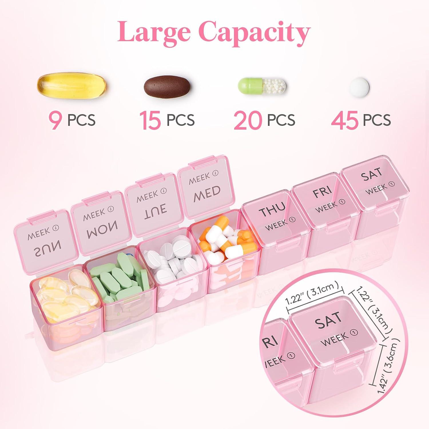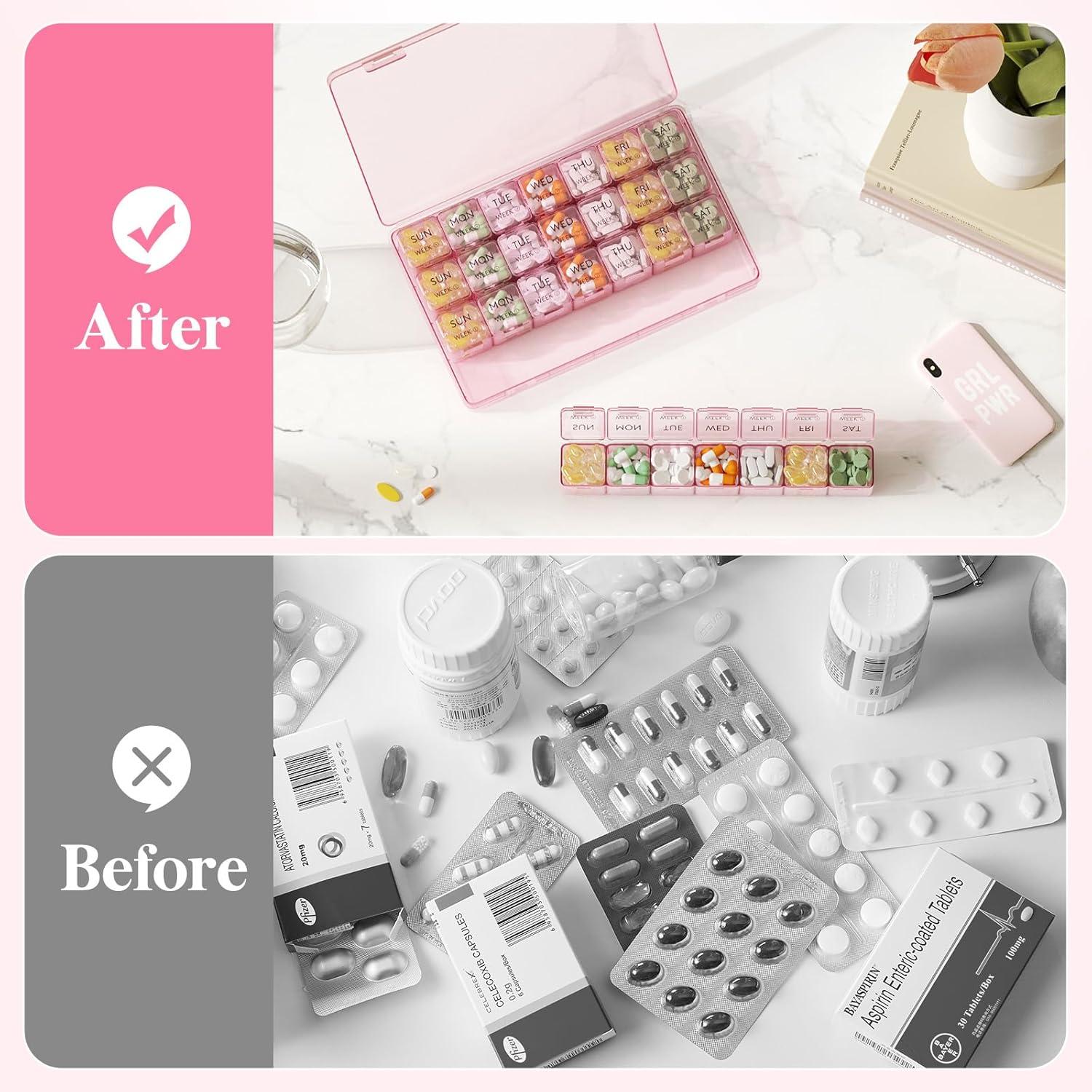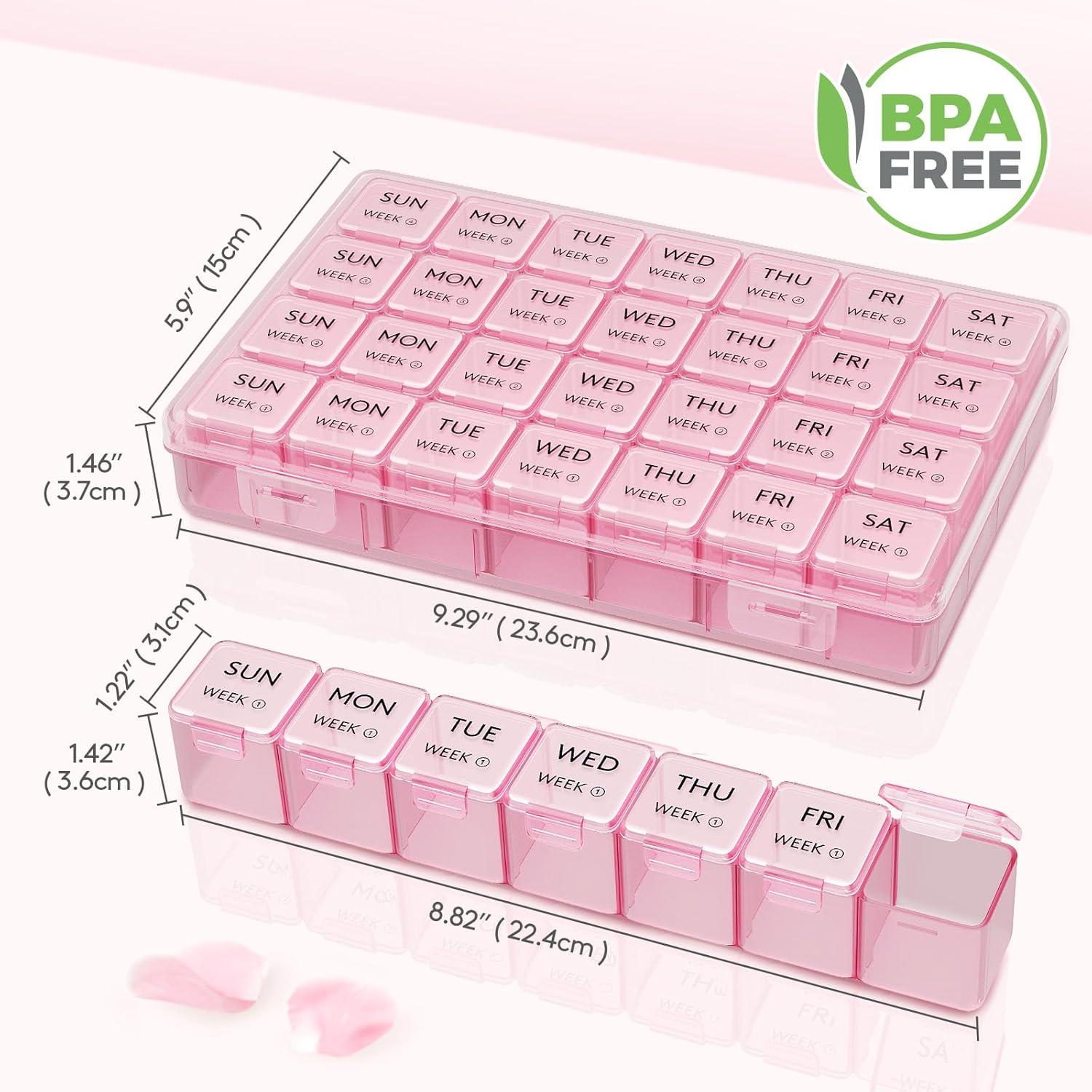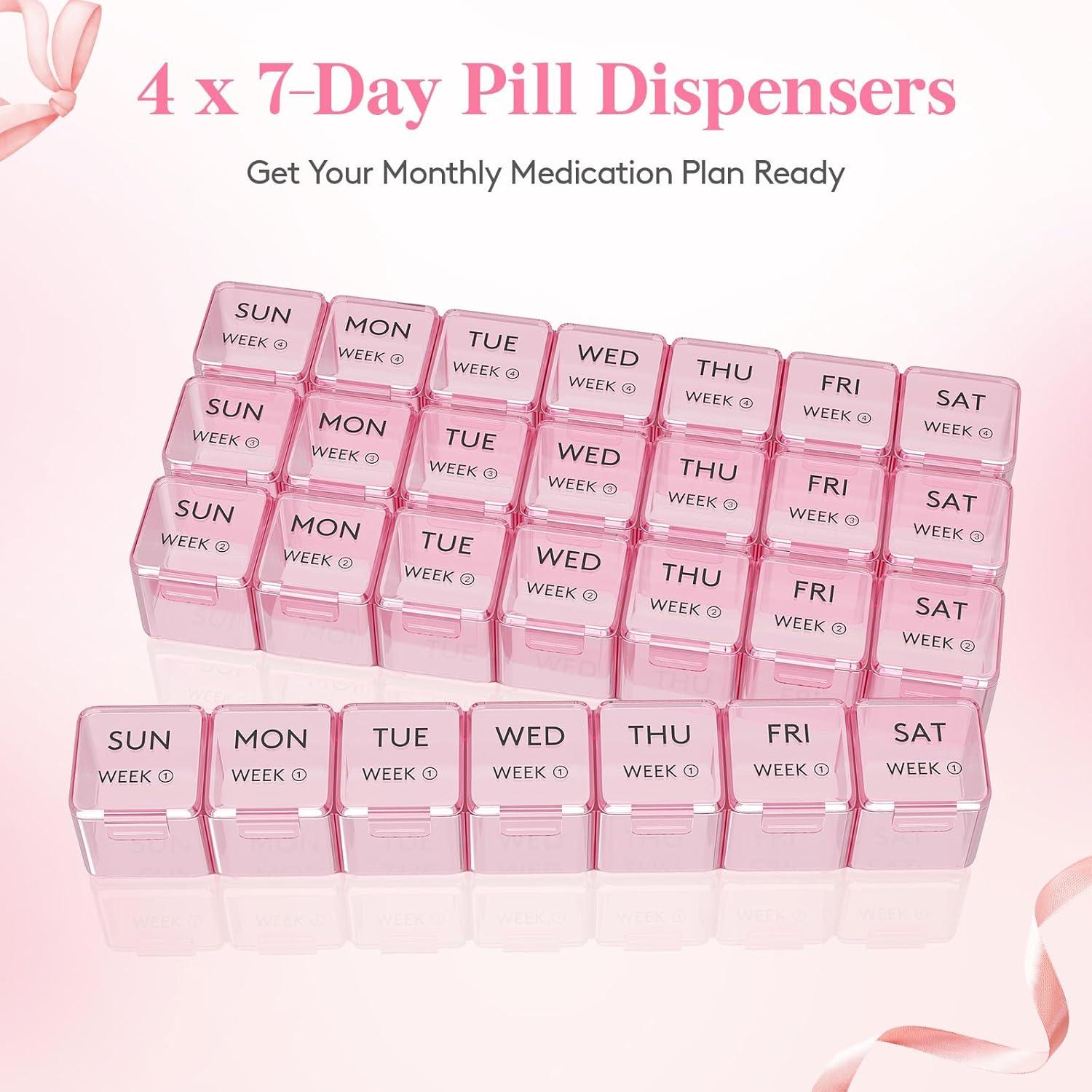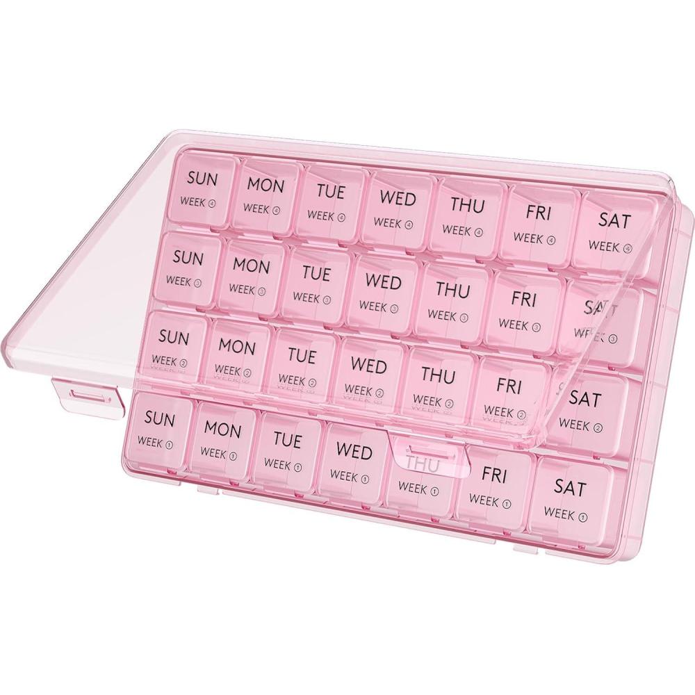 Lifewit Monthly Pill Organizer, 28 Day Pill Box, 4 Weeks One Month Pill Cases, Large Compartments Medicine Organizer for Vitamins, Fish Oils, Supplements, Pink(Pink)