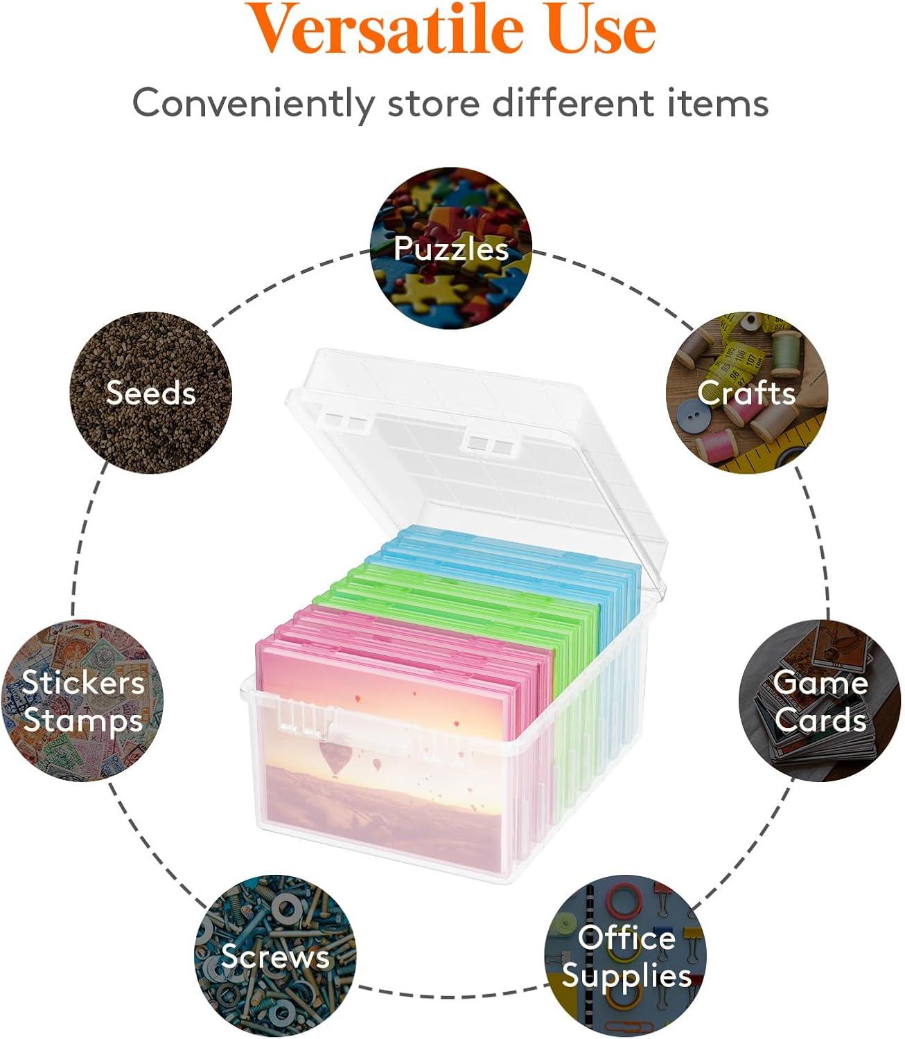 Versatile Storage Options: The transparent material of the storage box makes it easy to find items. In addition to storing photos, it can also be used to store a variety of other small items, such as seeds, handicrafts, puzzles, game cards, jewelry, greeting cards, and more. Its wide range of storage options makes it versatile for various uses.