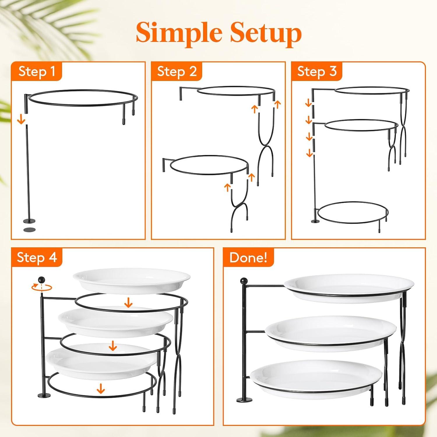Space-Efficient: The serving platters and trays maximize vertical space, adding height to your food display while presenting food in an organized and appealing manner; When not in use, the trays can be stacked for easy storage