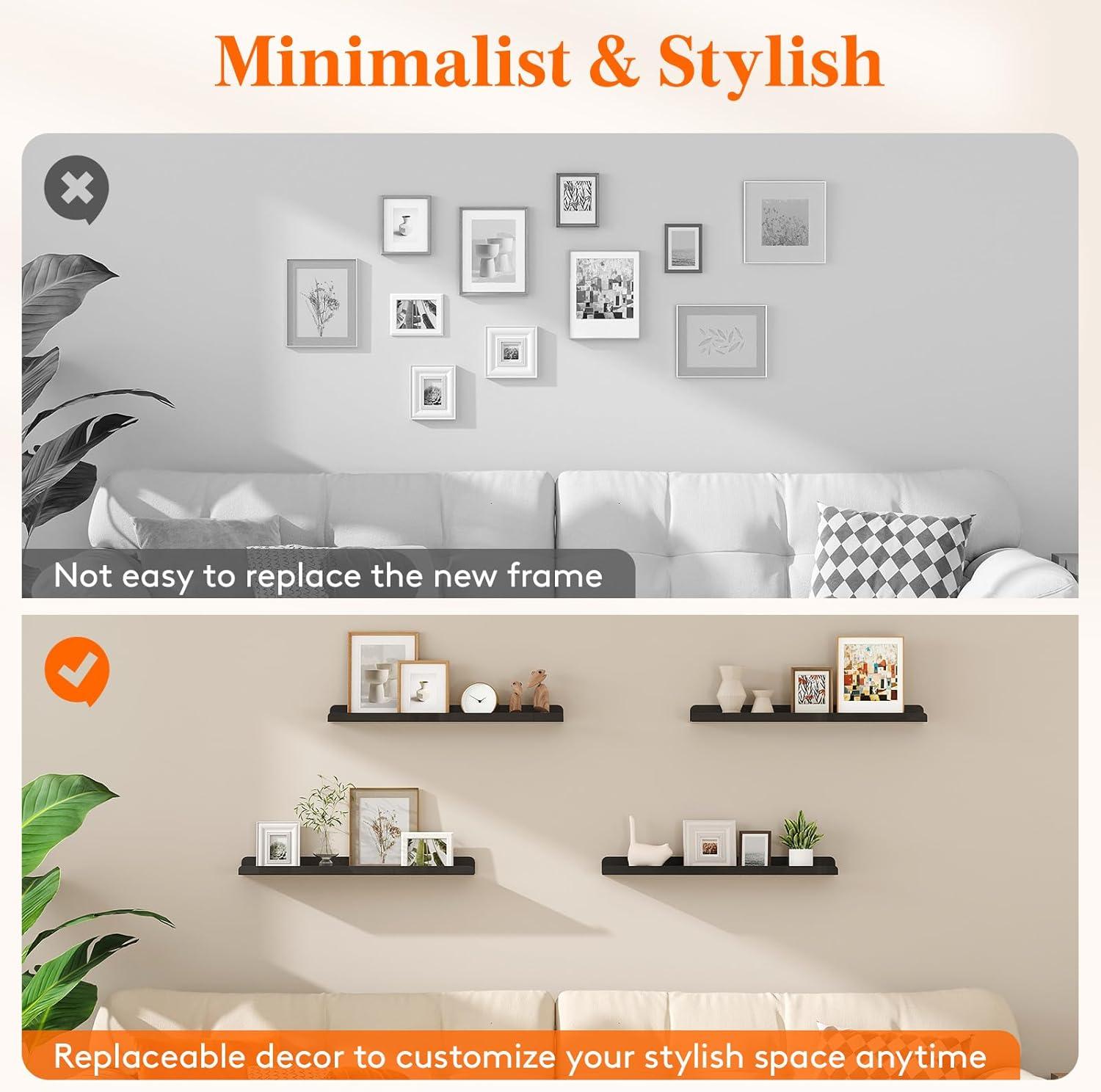 Versatile Storage: This picture ledge shelf offers ample storage space, keeping your home well-organized. These floating shelves for the wall come in different sizes and multiple kit options to meet your varying storage needs in various locations