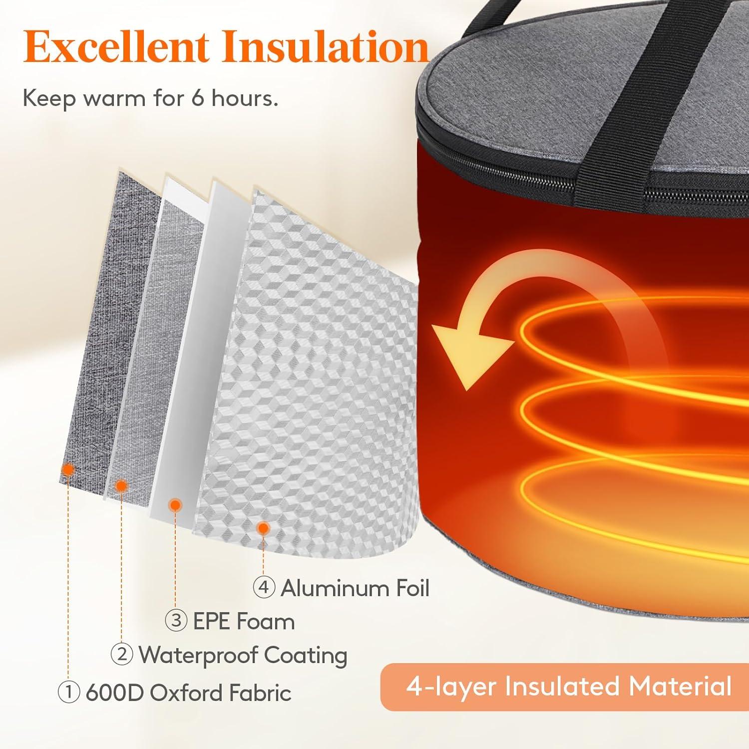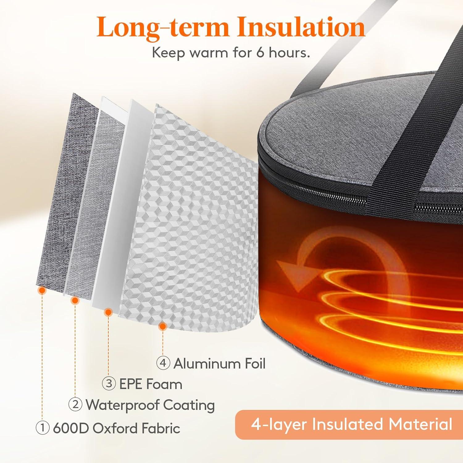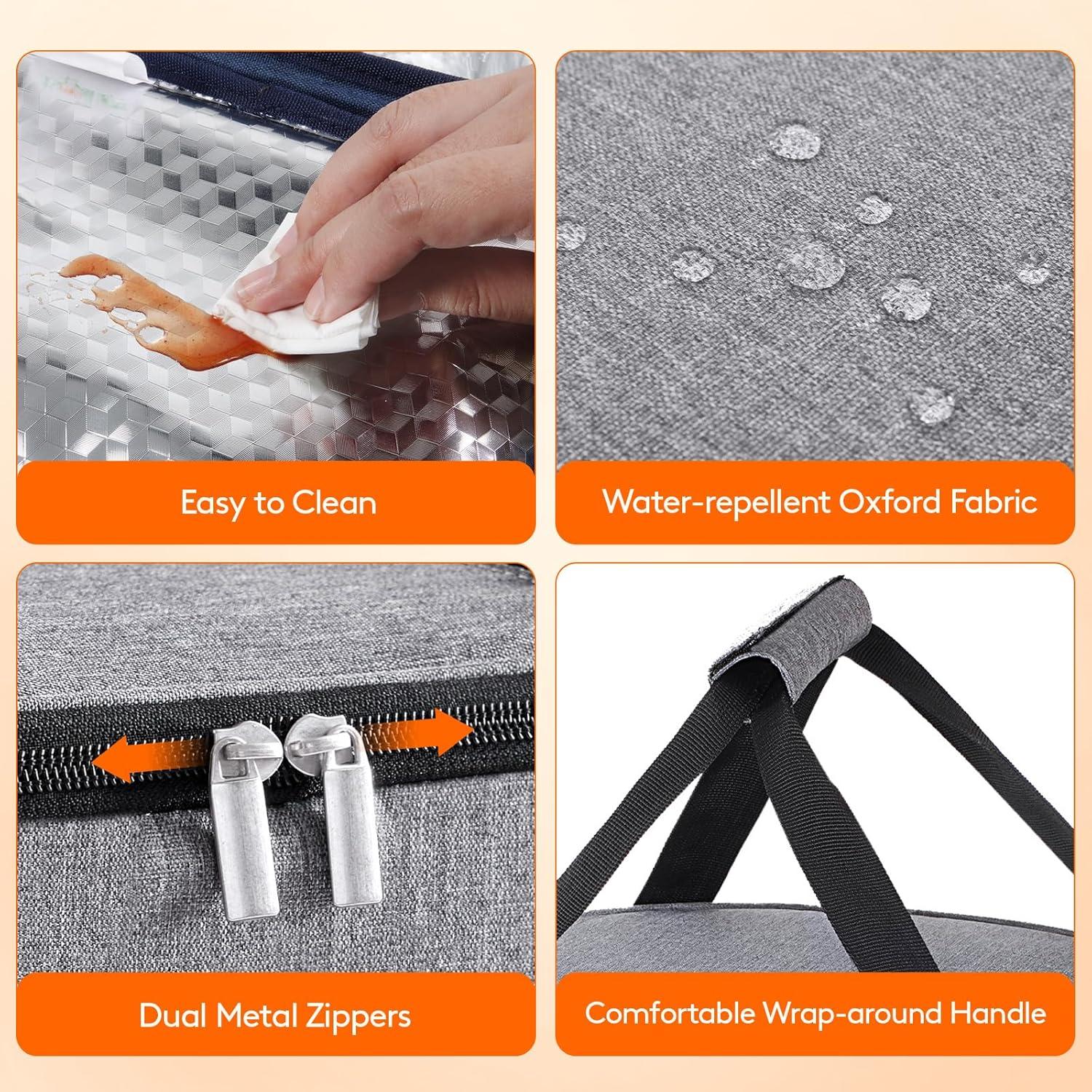 Superior Insulation: Featuring a food-grade aluminum foil lining and EPE foam filling, this casserole dish carrier ensures superior thermal insulation for extended periods. Perfect for holiday gatherings, family dinners, potlucks, or office events