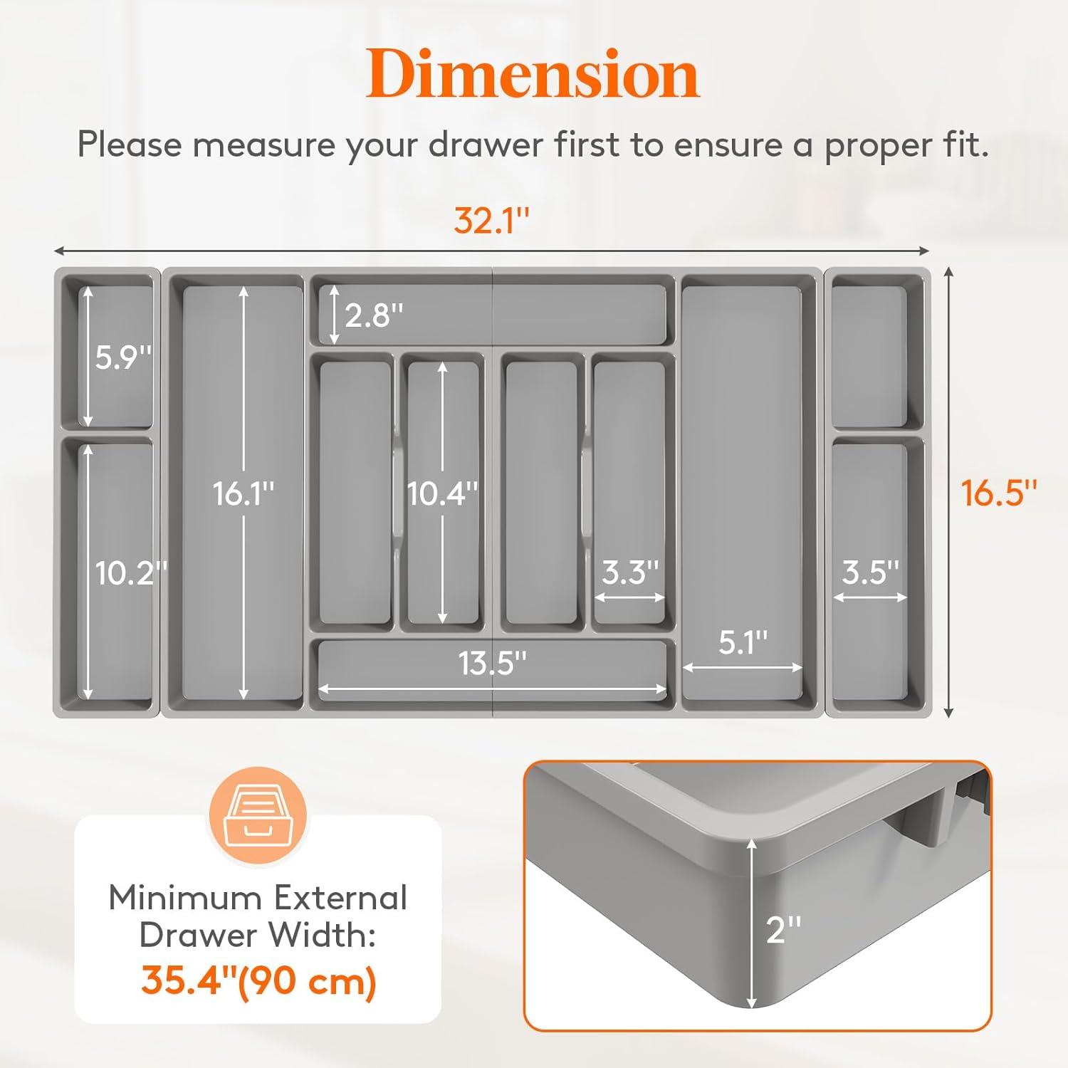 Adapts to Your Drawer Size: This large silverware organizer measures 20.3 x 16.5 x 2 inches (51.6 x 42 x 5 cm) once installed, designed to fit drawers with an external width of 23.6 inches (60 cm). Please measure your drawer’s size before ordering to ensure a perfect fit