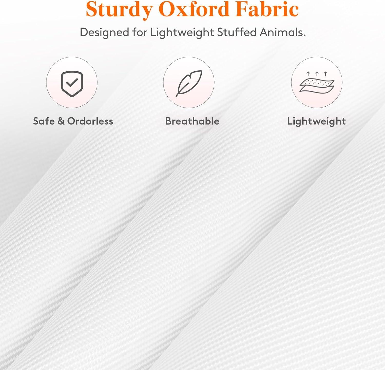 Sturdy Material & Strong Support: Made from sturdy oxford cloth, this stuffed animal storage is tear-resistant, lightweight and breathable, ensuring baby safety. With 4 support rods, it offers excellent load-bearing capacity, maintaining its shape and preventing sagging or deformation. Its simple and adorable design makes it perfect for a child's room