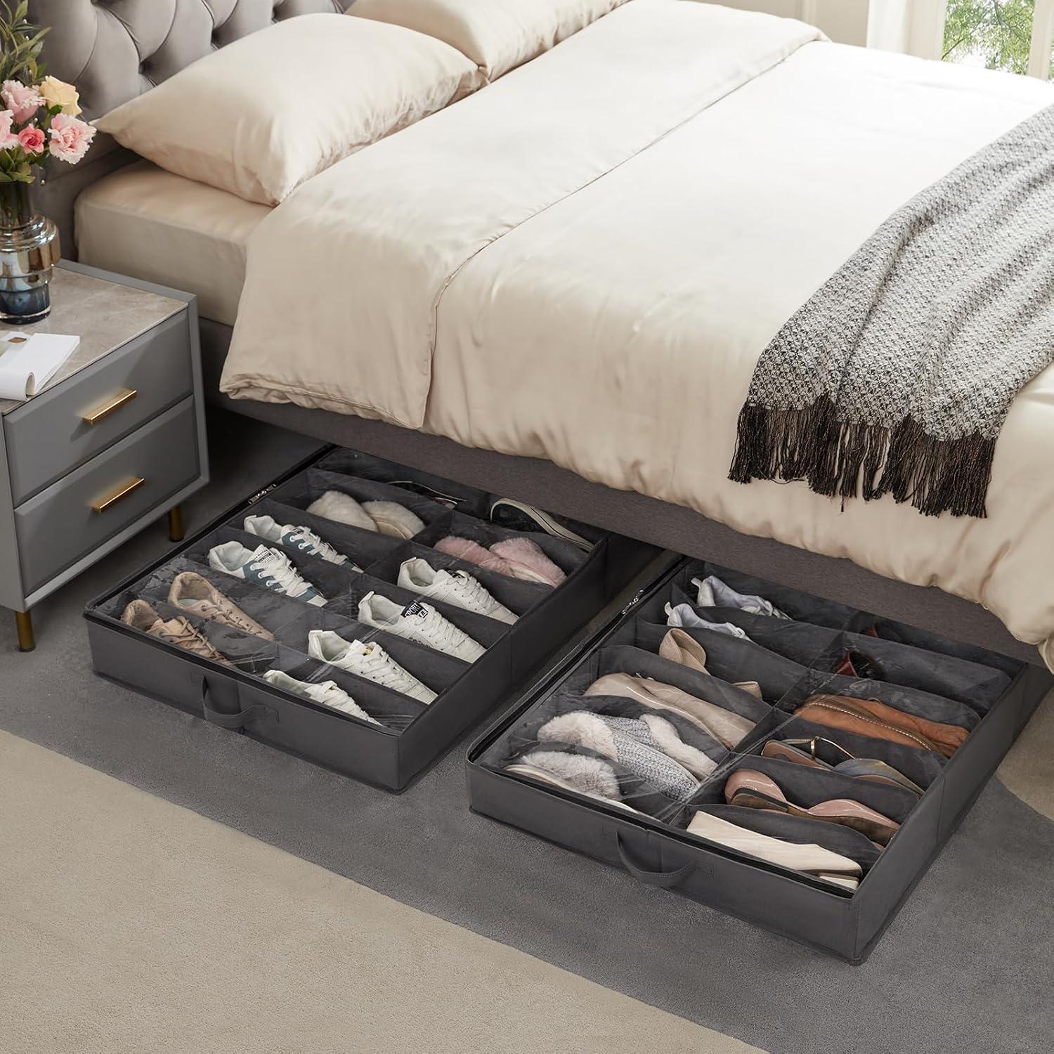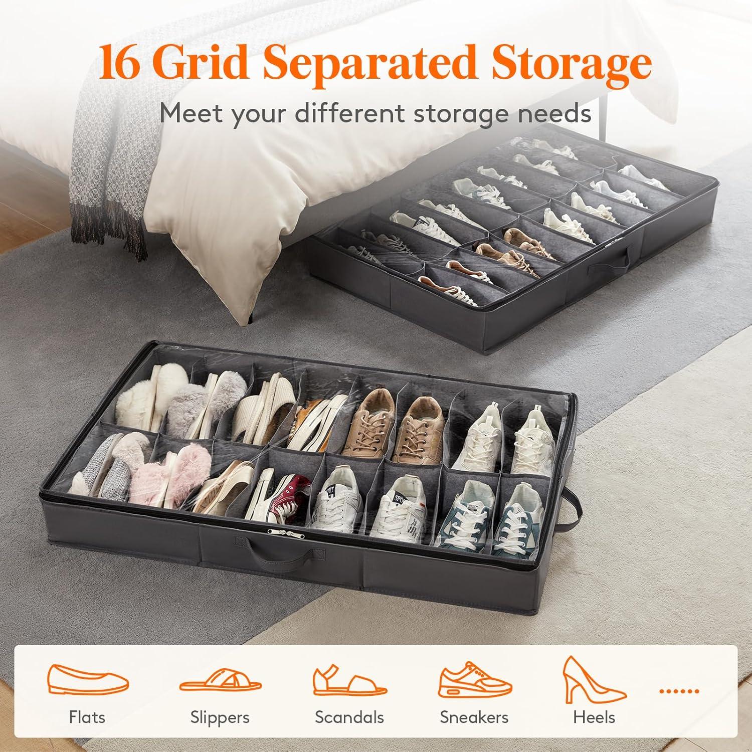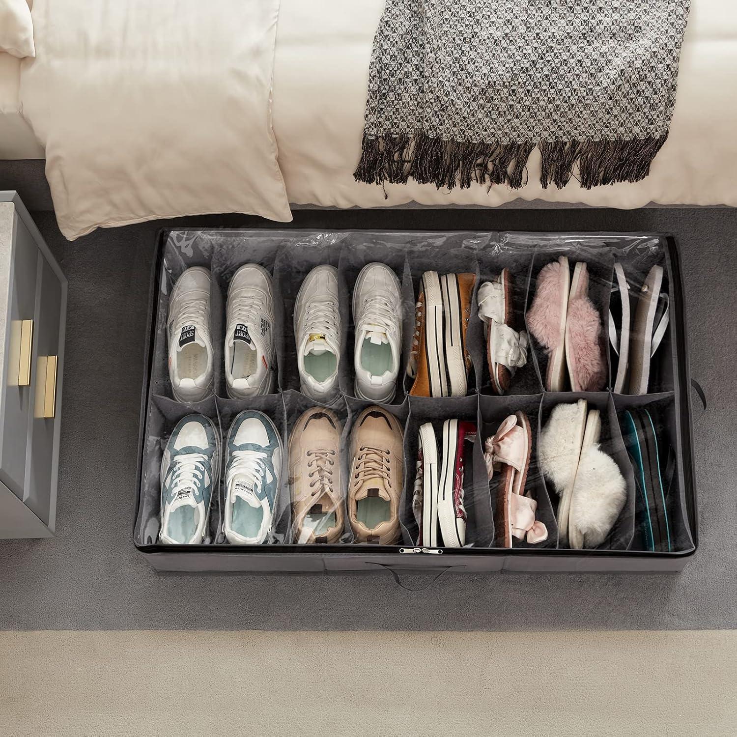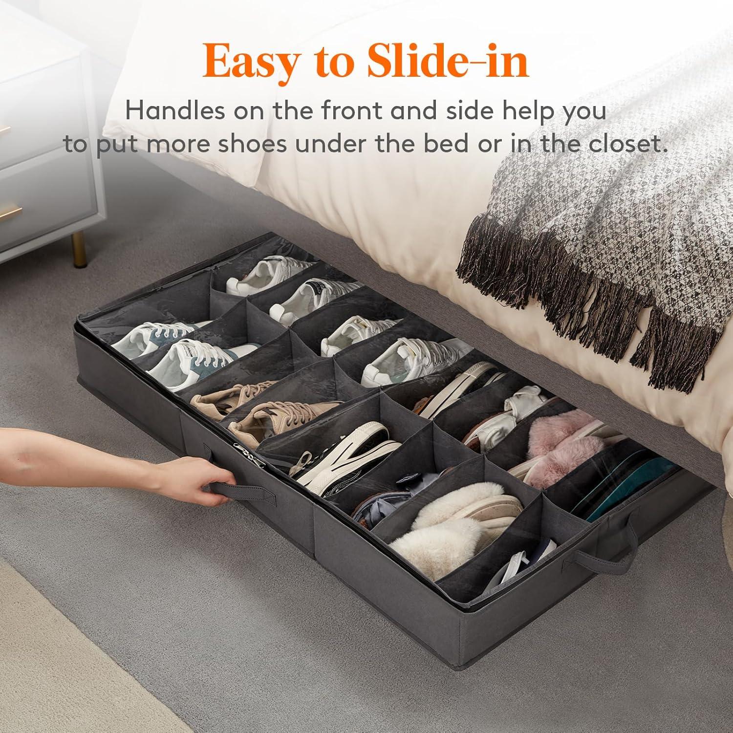 Thoughtful Handle Design: With 1 handle on each side, it is easy to pull out, can be placed horizontally or linear, making it suitable for most underbed spaces. Make maximum use of your underbed space with this underbed shoe organizer.