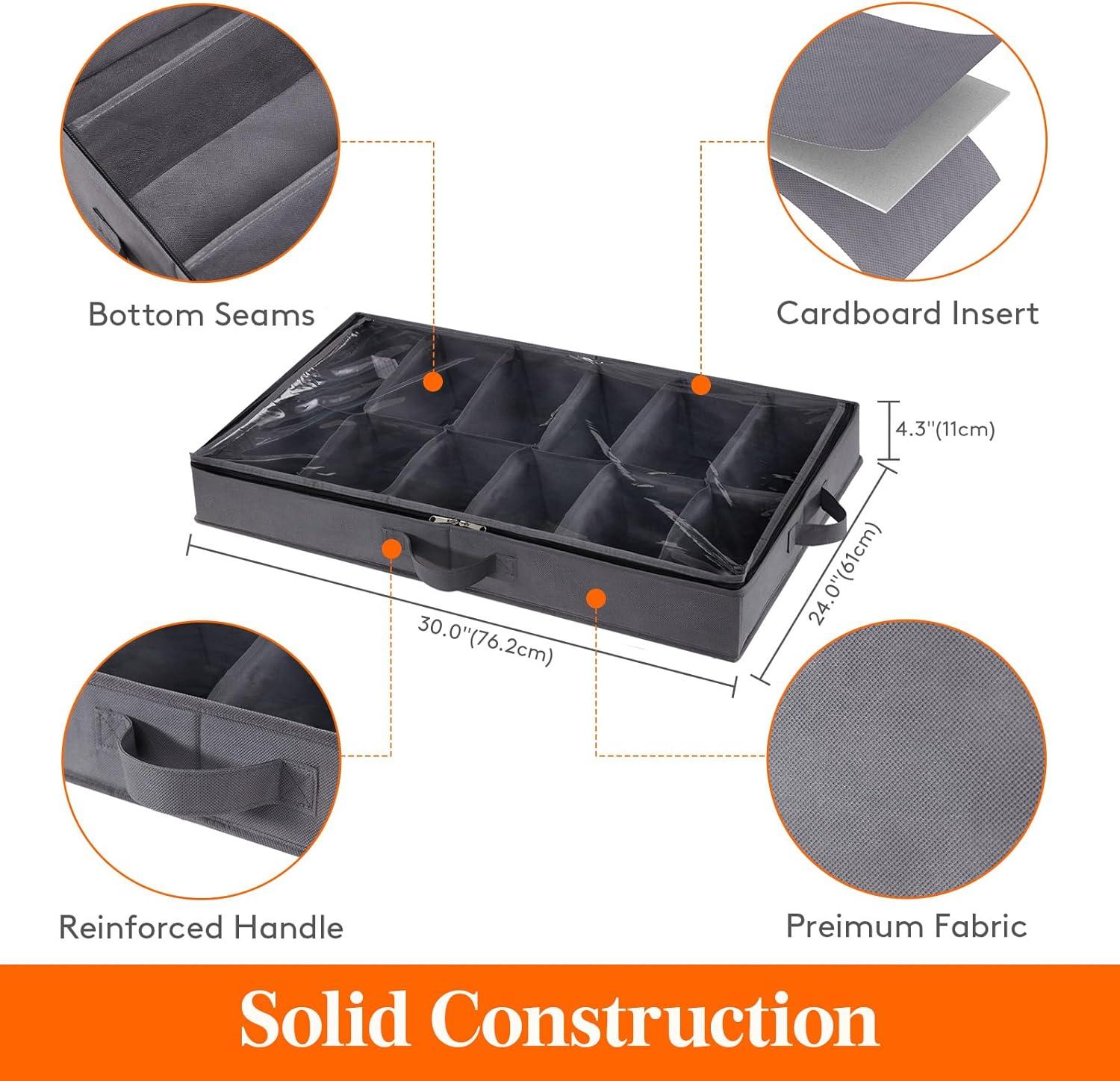 Simple Setup: Made with sturdy 2mm cardboard sides,and strong reinforced handles, this organizer stays upright and can be expanded for immediate use. With 12 compartments and seamed bottom (keeps your shoes from sliding), we have thoughtfully designed this organizer for you.