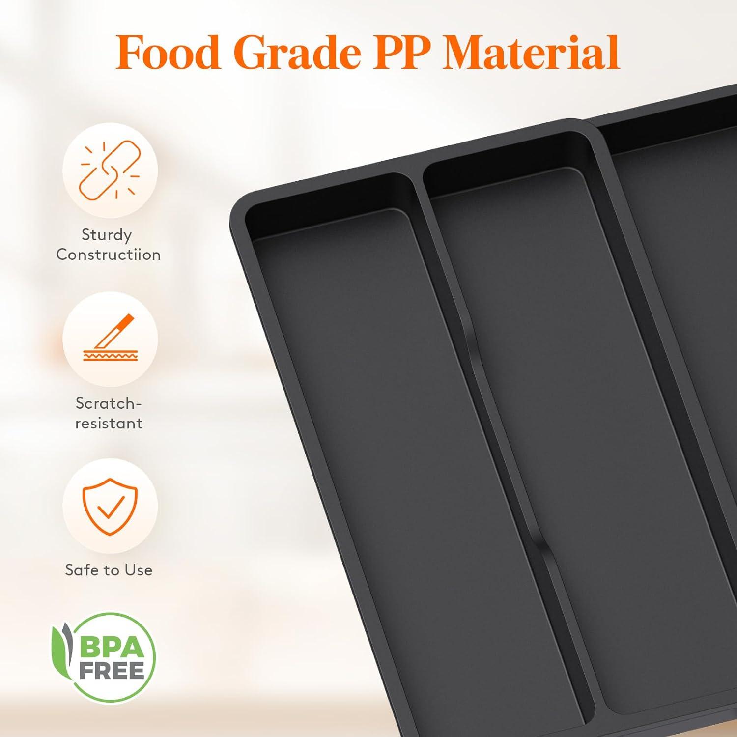 Robust and Safe: This kitchen drawer organizer is crafted from premium PP material, BPA-free and built to last. It ensures your silverware is stored in a healthy, safe environment for worry-free use