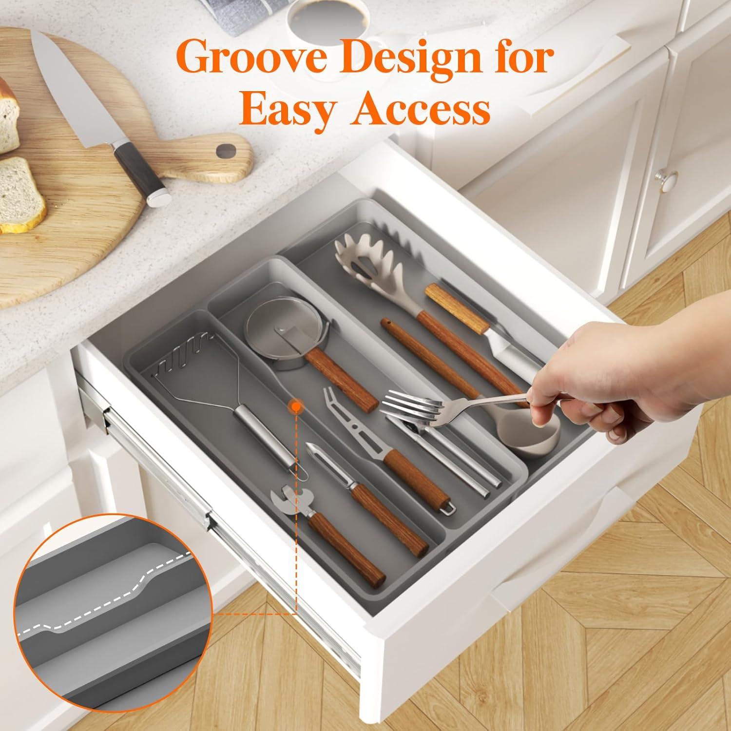 Thoughtful Design: Unique groove design for easy access to cutlery; The buckle design ensures smooth sliding and effortless adjustment, preventing partition displacement. Lifewit utensil holders bring seamless order to your kitchen!